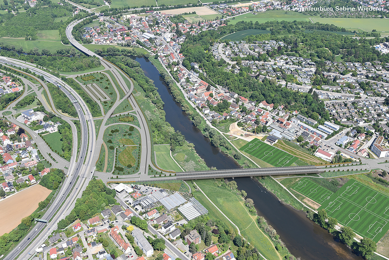Da der Kreisel in einer sensiblen Umgebung liegt, insbesondere in der Nähe der Regenauen, wurde die Planung so gestaltet, dass die Auswirkungen auf Natur und Landschaft so gering wie möglich sind. Ein zentraler Ansatz ist die Reduzierung der Eingriffe durch eine kompakte und gezielte Verkehrsführung. Neue Direktrampen und Verbindungsstraßen werden so angelegt, dass sie möglichst wenig Fläche beanspruchen und bestehende Verkehrsflächen effizient genutzt werden. Dadurch wird die Flächeninanspruchnahme reduziert und der Eingriff in die umliegenden Gebiete minimiert.